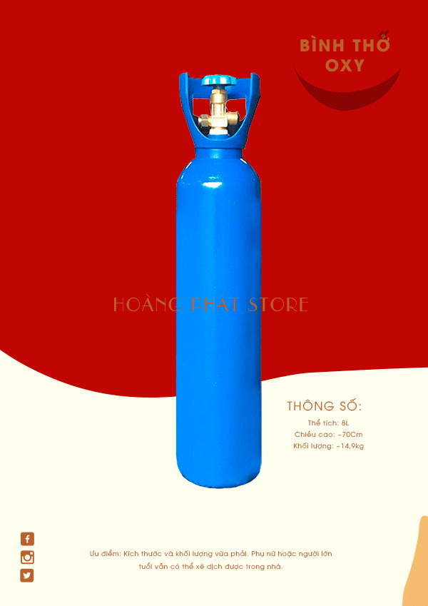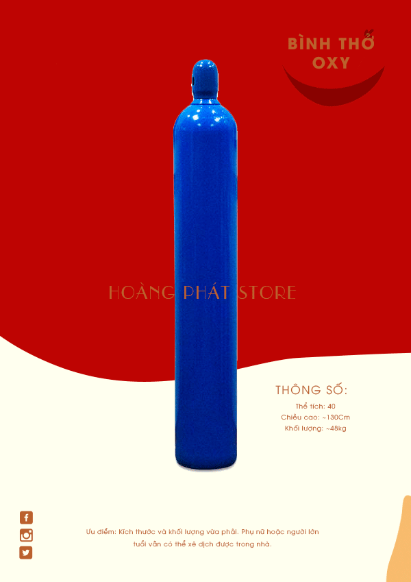 Dung tích: Chứa khoảng 1500 – 2000 lít khí oxy tinh khiết.